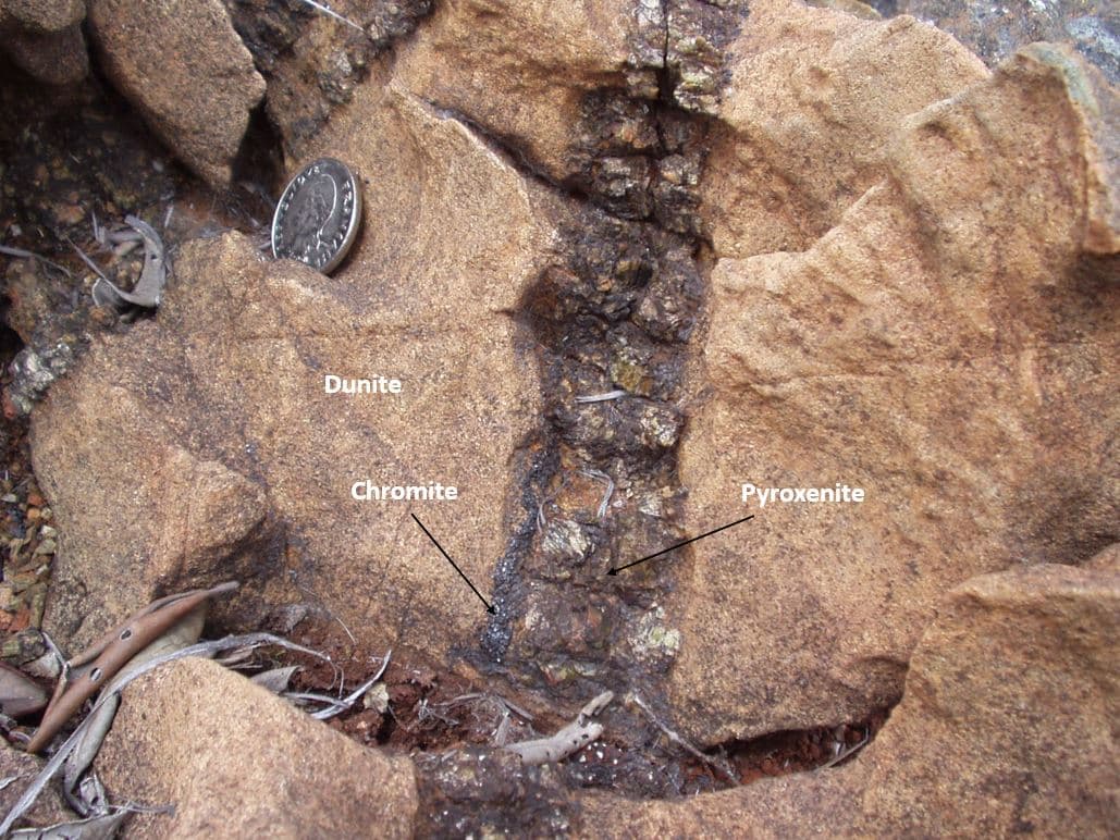 La chromite a été exploitée avec plus ou moins de succès dès 1880 en Nouvelle-Calédonie. Au début du XXème siècle l’île fut même le troisième producteur mondial grâce au gisement de Tiébaghi situé à l’autre extrémité de la Grande Terre (mais c’est une autre histoire).